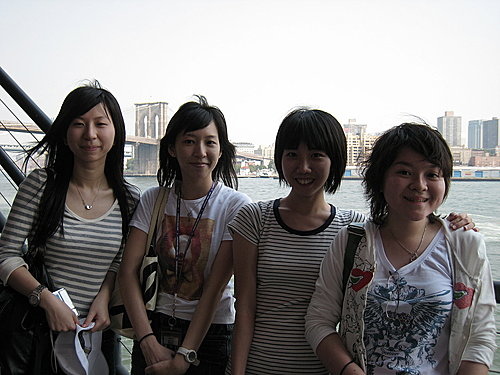 經過了長途的飛行, 再加上一小段的驚險, 終於到達紐約NYU了!! 宿舍都分配好了, 不應該說分配, 應該說都"喬"好了! 要跟同團的人住, 要跟熟悉的人住, 都搬好了, 就是沒有人要跟老師住 :P (開玩笑), 搬來搬去, 一番協調之後, 總算都有個圓滿的結局, 其實留學生生活也是這樣, 總是要有要與不同人群相處的適應能力, 這點很重要! 宿舍外觀: http://www.nyu.edu/housing/residence.halls/hayden.hall/ 下午參觀蘇活區(老師之後會為大家補上照片)後, Michelle老師帶著大家前往KMART購買生活用品, KMART是NYU學生的衣食補給站, 因為它是離NYU最近的大型超市, 什麼都有賣, 毛巾枕頭棉被衛生紙洗衣粉, 一樣都不缺, 而且離宿舍只有幾分鐘的路, 超方便超實惠而且料好實在! KMART網站: http://www.kmart.com/shc/s/home_10151_10104 傍晚原本以為大家應該已經累攤了, 沒想到有幾位同學在已經待在紐約數週的識途老馬帶領下, 前往Chinatown購買電話卡, 獨立精神, 勇氣可佳, 但是還是提醒同學一切以自身安全為最大原則!!膽大但是要心細喔!出門一定要報告老師喔!! 關於電話卡, NYU已經發給每位同學一張電話卡, 老師的房間有電話機, 已告知同學如要使用電話可到老師房間打電話, 比較省錢喔!!!!!! 第二天7/17, 那個被媽媽交代需要wake up call的Simon~已經搶先在老師敲門前起床, 表現非常好, 希望一直保持這個"備戰"狀況, 另外不知是有同學來不及吃早餐還是想嚐嚐紐約風格的早點, 有人已經買起路邊的BEGAL, 直說"滋味真不錯!" 他就是Simon, BEGAL是他吃的!!他正在買BEGAL! 一早上到學校去測試後已經為大家分好了班, 去上課了, 接下來, 下課後, 下午的行程預計是前往South Street Seaport (南街海港) 這裡算是一個悠閒的地方, 可以逛街, 喝下午茶, 看布魯克林橋, 今天的行程有一項很重要的重頭戲--中央公園紐約愛樂交響樂團露天音樂會, 躺在草地上聽紐約愛樂, 真是一大享受阿! 可惜公園內手機收訊不良, 不然打個電話回家請爸媽一起享受這個在紐約夏季的盛會! 美女們在布魯克林橋前留影!! Fiona / Tiffany / Naomi / Emily 我想Michelle老師在下一篇會為我們帶來這美麗饗宴的照片!大家拭目以待吧!