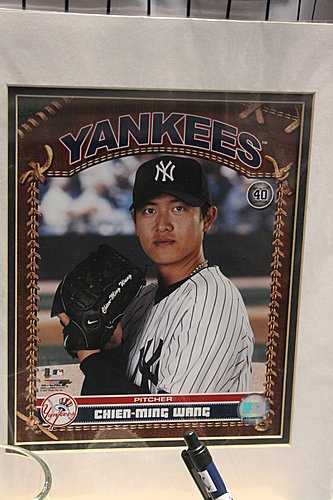 由於王建民之前連續兩年19勝的優異表現,他在美國也有許多美國當地球迷,他的球衣也成為搶手貨,甚至限量簽名照價格也炒得老高,看到沒隔壁是松井秀喜,這表示王建民的名氣已經不輸給大聯盟第一流的球星了.