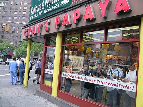 。紐約有三家店,最靠近NYU的應該是這一家402 Sixth Ave. at 8th Street . 同學如果吃多了學生餐廳想換換口味,Gray’s Papaya可是物美價廉,你的好選擇。哇~迫不及待想去紐約吃個飽飽飽了!