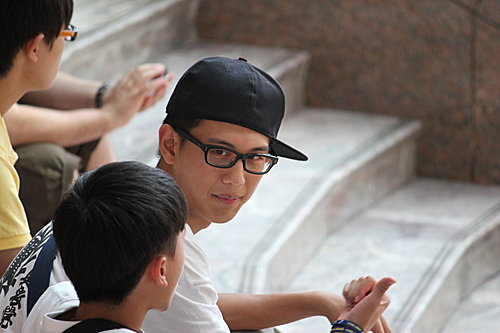 是"團對"嗎?沒啦,我還太小,馬麻說不能交男朋友,只是一起擠在樹蔭下而已,