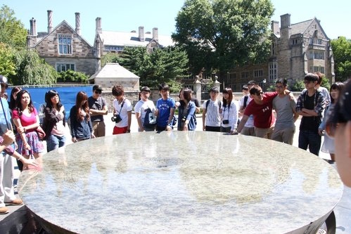 著名的女人桌,記載著耶魯建校以來女生畢業人數,設計者就是耶魯大學的女畢業生,她還有個著名的作品-越戰紀念碑