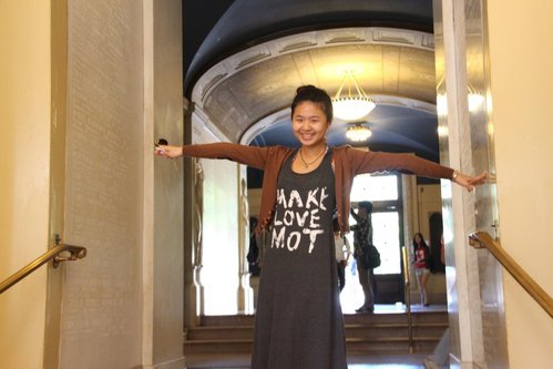 超棒的耶魯圖書館,全館只有四個支點支撐整個建築,還有透光的大理石牆,身為未來建築系學生,肯定要拍個照記錄下來